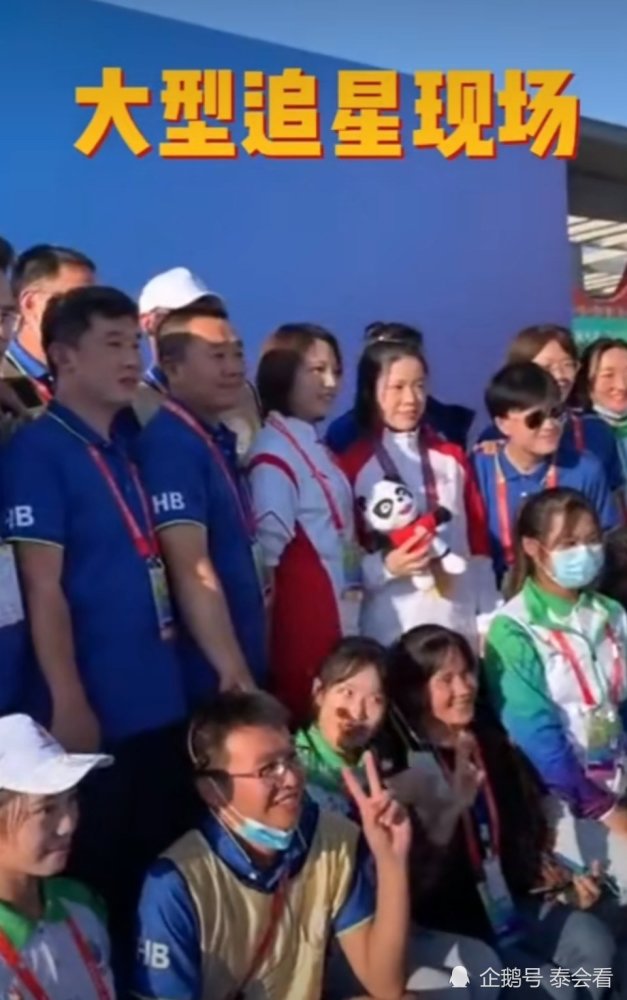 此番出战全运会,杨倩不负众望,再度摘金,展现了强大的竞技能力,值得一提的是,就在等待颁奖的间隙,不少全运会的工作人员还主动与杨倩求合影,虽然这个00后女孩还有点羞涩,对着摄像镜头摇了摇手,但她还是没有拒绝合影要求,一个又一次耐心地与工作人员同框合影,堪称是“大型追星现场”。
